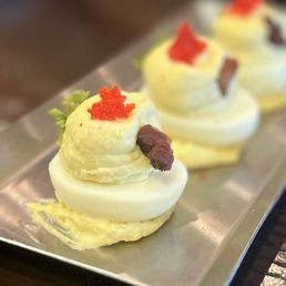 During my visit, I indulged in a range of delectable dishes, such as the deviled eggs with caviar, pork belly bites, and the killer shrimp. Each dish showcased innovative flavors and impeccable presentation, demonstrating the chef's creativity and attention to detail. The culinary highlights for me were the pork belly bites and the deviled eggs, which left a lasting impression with their bold flavors and perfect execution.